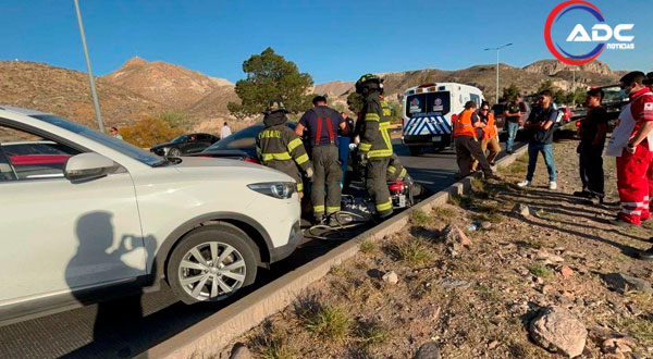 Chihuahua, Chih.- Un fuerte accidente vial registrado este viernes dejó como resultado tres personas lesionadas, una de ellas atrapada al interior del vehículo en el que viajaba.