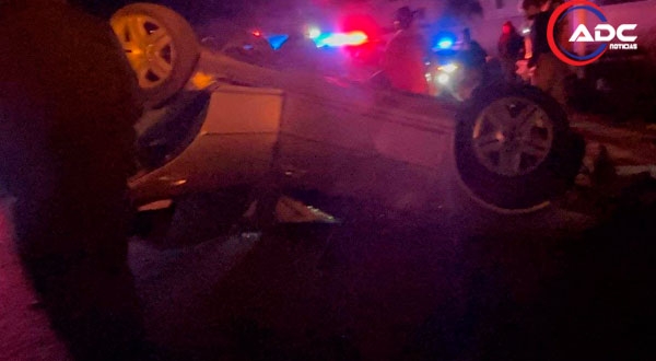 Chihuahua, Chih.- Cuatro jóvenes resultaron con lesiones leves la noche de este viernes luego de que el vehículo en el que viajaban chocara contra una estructura de protección, saliera proyectado y finalmente volcara.
