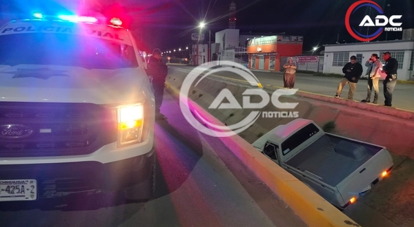 Cd. Delicias, Chih.- La mañana de este domingo se registró un accidente vial en la avenida Gómez Morín, donde una camioneta terminó dentro de un canal pluvial a la altura de la glorieta de esa vialidad. Afortunadamente, no se reportaron personas lesionadas, únicamente daños materiales.