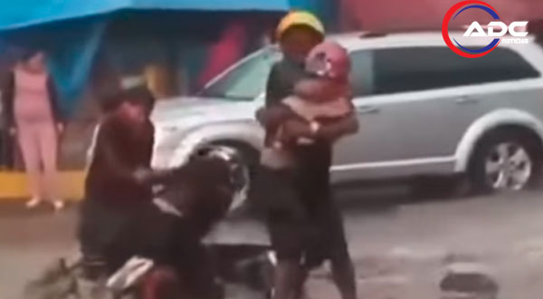 El fenómeno se registró después de las 14:00 horas, cuando la tromba provocó un descenso de agua inusualmente fuerte. Mientras otros vehículos avanzaban despacio, el hombre que transportaba a su familia en la motoneta fue arrastrado varios metros por la corriente. Un video del momento muestra a la mujer sosteniendo al niño de entre uno y dos años, mientras el padre intentaba estabilizar la motoneta hasta que quedó atorada. Finalmente, ambos lograron ponerse a salvo con el niño en brazos.