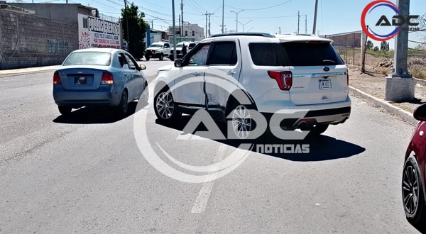 Cd. Delicias, Chih.- Un accidente vehicular dejó como saldo un menor de edad y una mujer lesionados, así como daños materiales por aproximadamente 180 mil pesos, luego de un choque ocurrido en el crucero de la avenida Solidaridad y calle Abeto Noble, en el fraccionamiento Cipreses.