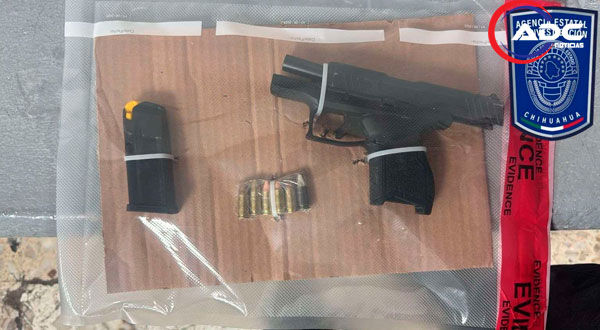 Chihuahua, Chih.- Elementos de la Agencia Estatal de Investigación (AEI), adscritos a la Fiscalía de Distrito Zona Centro, detuvieron en flagrancia a dos hombres durante un cateo realizado en un domicilio de la colonia Nuevo Triunfo, por su presunta responsabilidad en delitos contra la salud y posesión de arma de fuego.