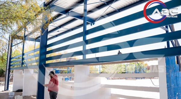 Delicias, Chih.-La Dirección de Obras Públicas de Delicias avanza en la fase final de la construcción de una techumbre sobre gradas en la cancha de la plaza principal de la colonia Campesina, informó su titular, Alfonso Rodríguez Porras. El proyecto forma parte de las obras ejecutadas a través del esquema de presupuesto participativo.