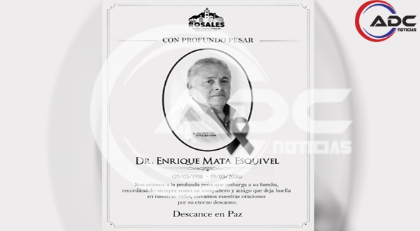 Rosales, Chih.- En un ambiente marcado por el respeto y la tristeza, el alcalde Pepe Andujo expresó su pesar por el fallecimiento del Dr. Enrique Mata Esquivel, un hombre cuya vida estuvo profundamente ligada al servicio y al bienestar de su comunidad.