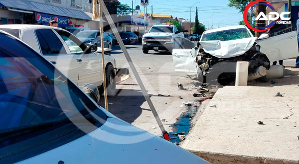 Cd. Delicias, Chih.- Una omisión de un señalamiento de alto total provocó un espectacular choque triple y la proyección de un vehículo contra las protecciones de una vivienda en la colonia Tierra y Libertad, dejando un saldo de personas lesionadas y daños materiales que ascienden a los 300 mil pesos.