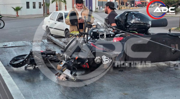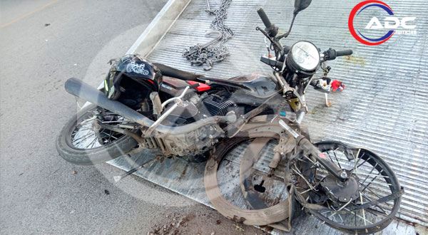 Cd. Delicias, Chih.- Un fuerte accidente tipo choque frontal se registró la tarde de este viernes en una zona céntrica de la ciudad, dejando como saldo un motociclista gravemente lesionado, una moto prácticamente destruida y un vehículo con daños considerables.