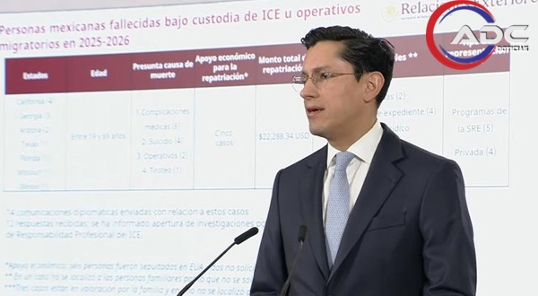 Por su parte, el subsecretario Roberto Velasco Álvarez informó que el gobierno mexicano ha enviado diversas comunicaciones diplomáticas para expresar su preocupación por las condiciones de detención. En este contexto, también dio a conocer que 13 mexicanos han fallecido bajo custodia del ICE o en operativos migratorios, casos que continúan bajo investigación.