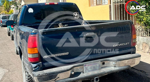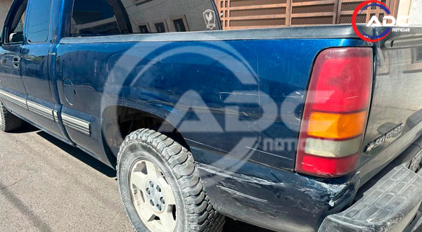 El choque provocó daños en la parte inferior y media de la caja de la camioneta, afectando la pintura y la estructura del vehículo.