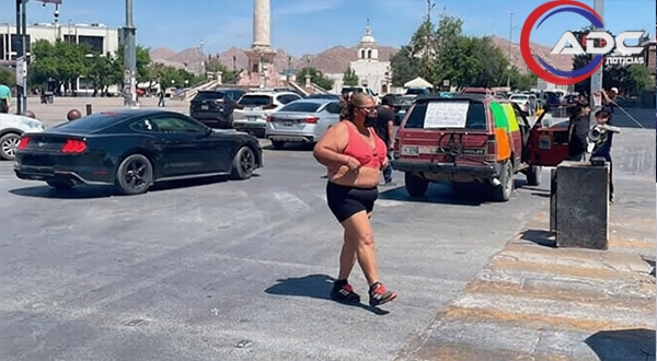 Durante la manifestación, la mujer permaneció en paños menores mientras participaba en la protesta, donde también se utilizó una camioneta y listones para cerrar los cruces de Aldama y Carranza, así como Aldama y Vicente Guerrero, lo que generó congestionamiento vehicular.