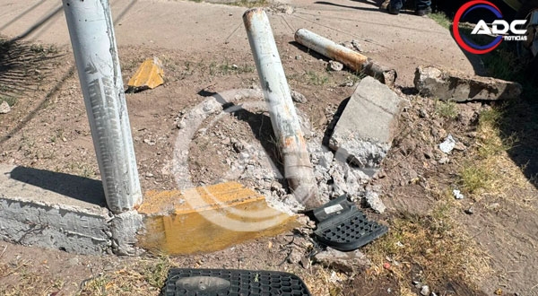 El vehículo se impactó contra tubos de contención instalados en el sitio, derribando dos de ellos y causando daños en el cordón de concreto al que estaban anclados. La camioneta presentó afectaciones principalmente en la parte frontal.
