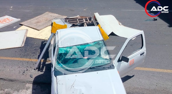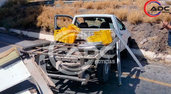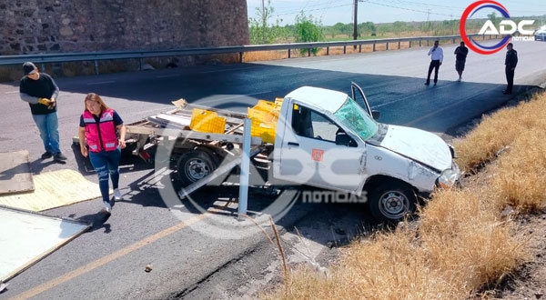 Meoqui, Chih.- Un aparatoso accidente se registró la mañana de este miércoles sobre la carretera federal 45, a la altura del kilómetro 147, en el municipio de Meoqui, cerca del puente que conecta hacia Julimes, donde una camioneta tipo pick up terminó fuera del camino tras perder el control.