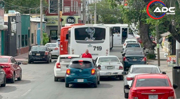 Chihuahua, Chih.- La tarde de este miércoles se registró un severo congestionamiento en el Centro Histórico, tras un accidente múltiple en el que participaron un camión de transporte público y dos vehículos particulares sobre la calle Neri Santos.