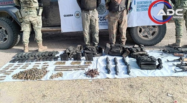 De acuerdo con autoridades, la acción se derivó de patrullajes terrestres realizados en el marco de la Estrategia Nacional de Seguridad Pública, con apoyo de mandos de la XI Región Militar y la 42/a Zona Militar. Durante la intervención, los efectivos localizaron cinco armas largas, 35 cargadores, mil 359 cartuchos útiles, seis contenedores con características similares a granadas, así como chalecos y fornituras.