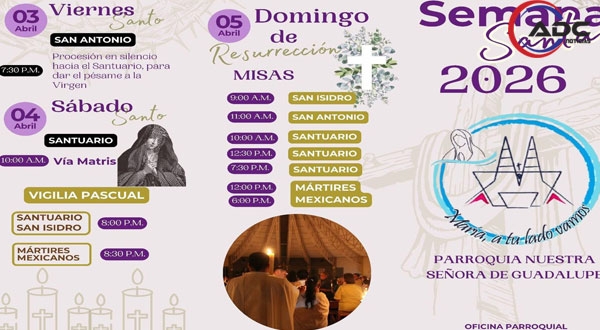 Cd. Delicias, Chih.- La Parroquia de Nuestra Señora de Guadalupe dio a conocer el calendario de actividades religiosas de Semana Santa 2026, invitando a la comunidad a participar con fe y recogimiento en cada una de las celebraciones.