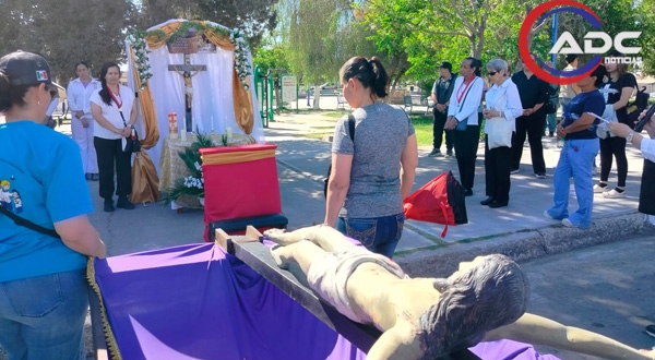 Delicias, Chih.-En el marco de las actividades de Semana Santa, este Viernes Santo se llevan a cabo representaciones del Viacrucis en distintas parroquias del municipio, donde cientos de fieles participan en esta tradición religiosa.