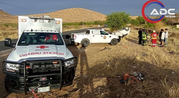 El percance se registró a la altura del kilómetro 4, donde el automóvil salió del camino en una curva y terminó volcado sobre su toldo. Automovilistas que presenciaron el hecho alertaron a un elemento del Cuerpo de Bomberos cercano, quien acudió de inmediato para brindar apoyo a los ocupantes.