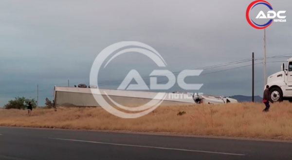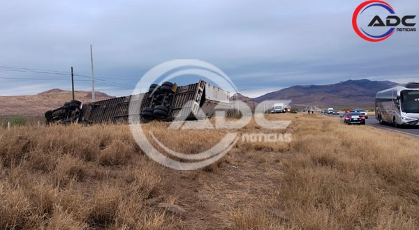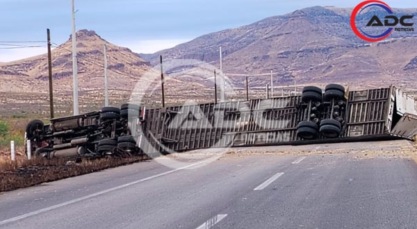 Meoqui, Chih.- Esta mañana se registró un accidente vial tipo volcadura sobre la carretera Delicias–Chihuahua, justo después del seccional de Lázaro Cárdenas.