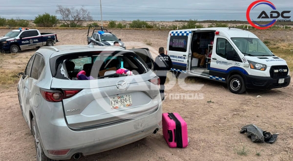 Camargo, Chih.- La mañana de este lunes 6 de abril, una familia sufrió un accidente vial en el kilómetro 55 de la carretera Camargo–Jiménez, en el tramo con sentido sur a norte.