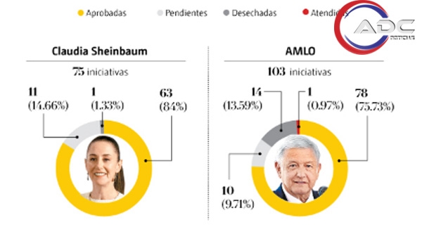 Entre octubre de 2024 y marzo de 2026, la mandataria presentó 75 propuestas, de las cuales 63 han sido avaladas, 11 permanecen pendientes y solo una fue rechazada. Este resultado se da en un contexto donde cuenta con mayoría calificada en el Congreso, a diferencia de ex presidentes como Enrique Peña Nieto, Felipe Calderón, Andrés Manuel López Obrador y Vicente Fox, quienes registraron menores niveles de aprobación en sus iniciativas.
