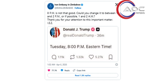A través de redes sociales, la representación diplomática cuestionó la hora fijada por el mandatario, quien estableció las 8:00 de la noche como plazo, señalando que en países como Irán y Zimbabue corresponde a la madrugada. En tono sarcástico, sugirieron modificar el horario para hacerlo “más conveniente”.