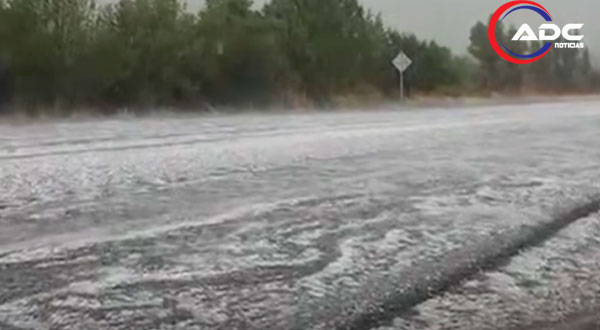Parral, Chih.-La tarde de este jueves, una intensa granizada acompañada de fuertes lluvias sorprendió a automovilistas que transitaban por la carretera Parral–Matamoros, generando condiciones peligrosas en varios tramos.