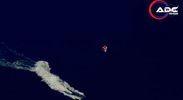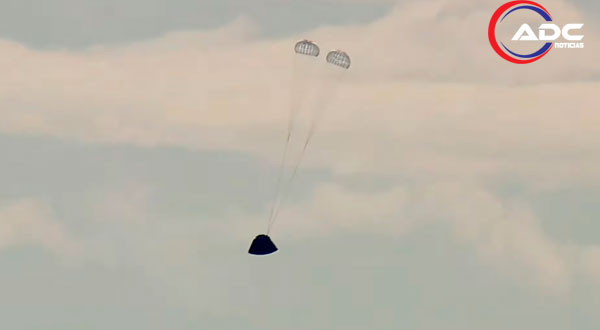 La cápsula ingresó a la atmósfera terrestre alrededor de las 18:09 horas (tiempo del centro de México), reduciendo su velocidad de forma drástica hasta permitir el despliegue de 11 paracaídas que facilitaron un descenso controlado hasta el océano.