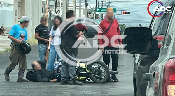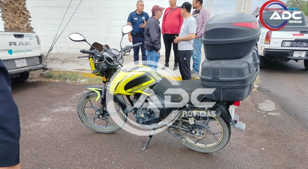 Cd. Delicias, Chih.- Un accidente vial tipo choque entre dos vehículos, uno de ellos una motocicleta, se registró esta mañana en el cruce de la avenida Séptima Oriente y calle Central, en el sector oriente de la ciudad.