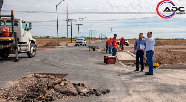 Cd. Delicias, Chih.- El presidente municipal de Delicias, Jesús Valenciano García, supervisó los trabajos de pavimentación de la prolongación de la avenida Fernando Baeza, obra que registra un avance del 90 por ciento y que se perfila como una nueva vialidad estratégica de entrada y salida para la ciudad.