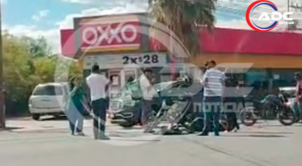Cd. Delicias, Chih.- Un accidente de tránsito registrado la tarde de este día sobre la avenida Río San Pedro, frente al fraccionamiento La Salle, dejó como saldo dos personas lesionadas.