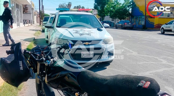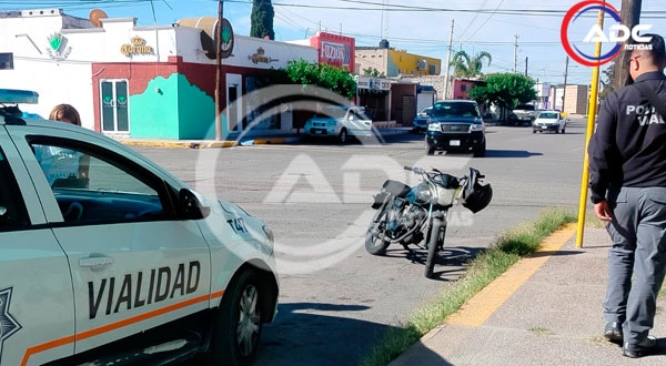 Cd. Delicias, Chih.- Un percance vial se registró la mañana de este jueves en las inmediaciones del Mercado Morelos, donde la falta de precaución al no ceder la preferencia de paso provocó una colisión entre una motocicleta y un vehículo particular, lo que generó la movilización de elementos de Vialidad para abanderar la zona y deslindar responsabilidades en este concurrido sector del centro de la ciudad.