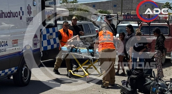 Camargo, Chih.-Un accidente vial se registró hace unos momentos en el cruce de las calles Tercera y Juan Escutia, donde un menor de 15 años que circulaba en motocicleta resultó lesionado tras un impacto con un vehículo.