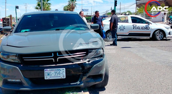 Cd. Delicias, Chih.- Un accidente vial entre dos vehículos se registró la tarde de este martes en el cruce de la avenida Calzada del Charro y avenida Solidaridad, en Delicias, generando movilización por parte de elementos de Tránsito y afectaciones a la circulación en la zona.