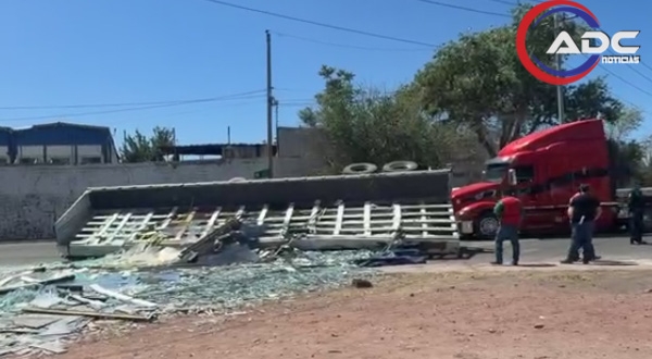 De acuerdo con los primeros reportes, el accidente ocurrió presuntamente por una mala maniobra del operador, provocando que la caja se volcara sobre su costado izquierdo. La unidad transportaba cerca de 30 toneladas de vidrio, las cuales quedaron esparcidas en un predio cercano, ocasionando pérdidas materiales considerables.