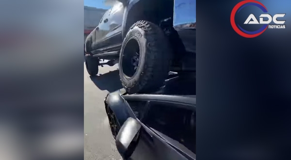En las imágenes se observa cómo el conductor del vehículo deportivo intenta retroceder para evitar el impacto; sin embargo, la camioneta avanza y logra subir parcialmente sobre el automóvil. A pesar de lo ocurrido, ambos conductores descendieron sin lesiones, mientras que la mujer al volante reaccionó con sorpresa al ver la escena.