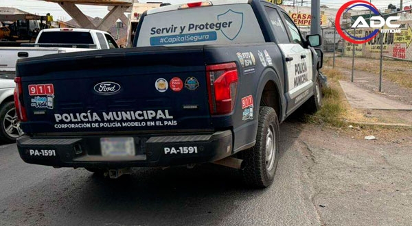 El percance ocurrió en el cruce de las calles Celia Andazola y Vialidad Los Nogales, en la colonia Chihuahua 2000. La patrulla con número económico PA-1591 resultó con daños materiales en la parte frontal derecha tras la colisión.