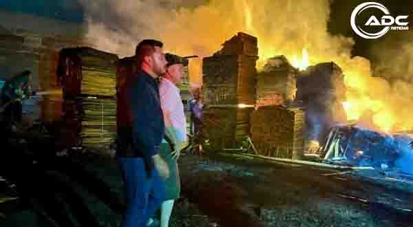 Las llamas consumieron principalmente tabletas de madera distribuidas en cerca de 40 tarimas, lo que representa el monto de las pérdidas reportadas.