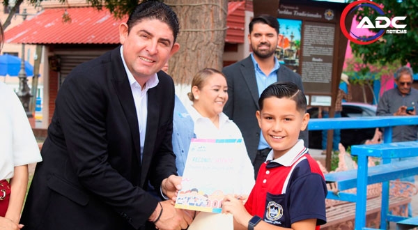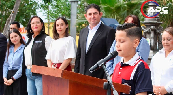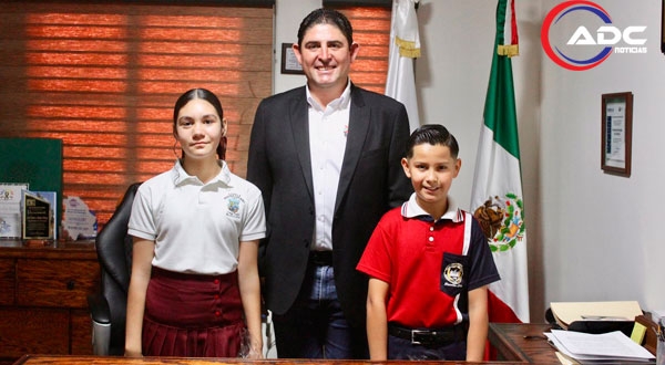 Alexa Esparza Rodríguez alumna de la Escuela Primero de Mayo ubicada en la comunidad de Congregación Ortiz y Jayden Iván Chavira Soto alumno de la Escuela Primaria Niños Héroes 2692 instalada en cabecera municipal, se desempeñaron este lunes 27 de abril como alcaldesa y alcalde respectivamente para festejar el día de las infancias