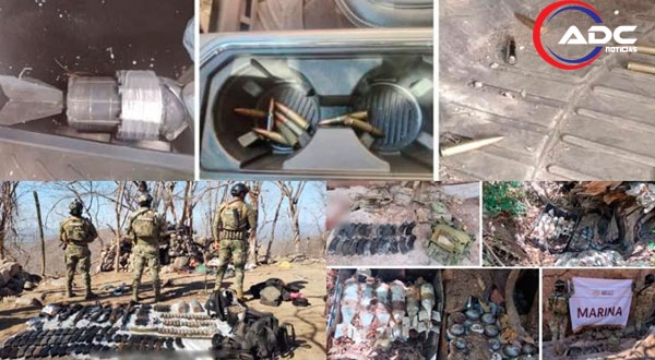 Sinaloa.- Luego de diversos operativos en Sinaloa, elementos del Ejército Mexicano y la Secretaría de Marina aseguraron arsenal y más de 70 explosivos.