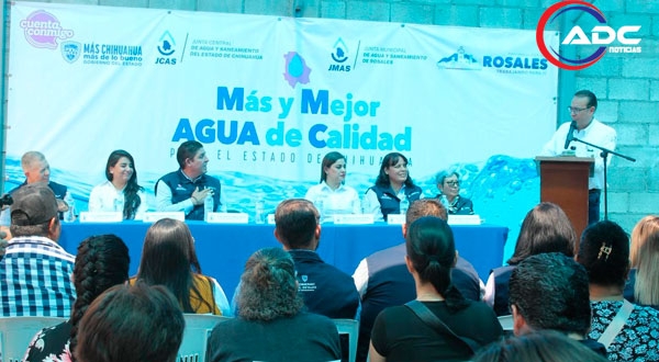 Rosales, Chih.- Se arrancó el programa Más y Mejor Agua de Calidad para el estado de Chihuahua en este municipio, con la presencia del director ejecutivo de la Junta Central de Agua y Saneamiento Mario Mata Carrasco, quien manifestó que cada vez es más necesario hacer un mejor uso del valioso recurso, pero también asegurarse de que llegue en cantidad y con calidad a cada usuario.