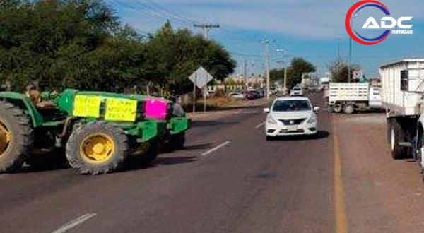 Jiménez, Chih.- Agricultores utilizaron tractores, maquinaria, camiones de volteo y otros vehículos para cerrar un carril en cada dirección de la carretera Jiménez–Zavalza, en el acceso al estado de Chihuahua.
