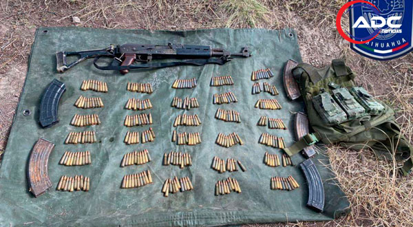 Tras darle alcance, los agentes detectaron que el sujeto portaba un fusil marca Century Arms, calibre 7.62 x 39, así como cinco cargadores, 588 cartuchos del mismo calibre y un chaleco táctico color verde, los cuales fueron asegurados.
