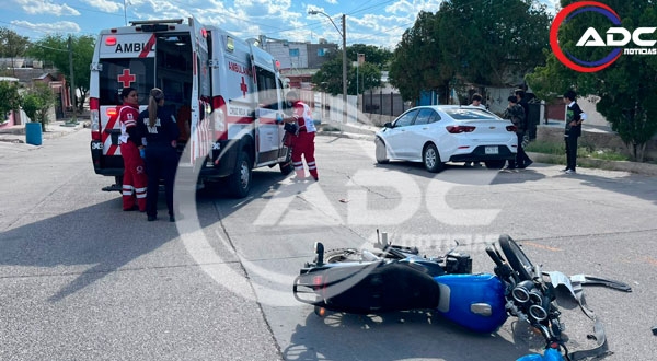 De acuerdo con los reportes, una motocicleta negra con azul, conducida por un joven de 19 años, invadió el carril de un automóvil Chevrolet blanco, manejado por un joven de 17 años, cuando ambos vehículos intentaban incorporarse a la calle 20 de Noviembre. La maniobra del motociclista provocó el choque, por lo que se le considera responsable del percance.
