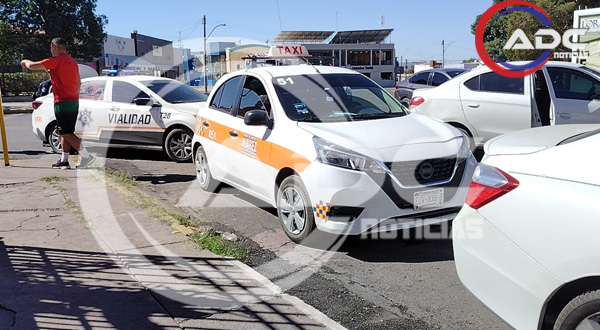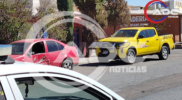 Cd. Delicias, Chih.- Un accidente vial se registró la tarde de este sábado en el cruce de la avenida del Parque y el círculo de la plaza Benito Juárez, donde un taxi del sitio Juárez, con número económico 51, impactó por alcance a un vehículo tipo sedán de color blanco, dejando únicamente daños materiales.