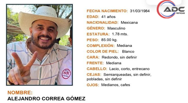 Zinapécuaro, Michoacán.- La Fiscalía General del Estado de Michoacán (FGE) emitió una alerta de búsqueda por Alejandro Correa Gómez, exalcalde de Zinapécuaro, quien fue visto por última vez la madrugada del domingo 2 de noviembre en el poblado de Tierras Coloradas, municipio de Hidalgo.