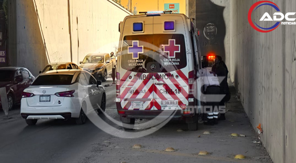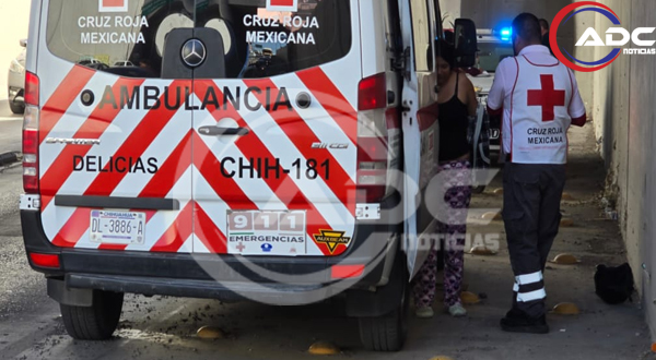 Cd. Delicias , Chih.- Dos personas resultaron con lesiones leves tras un choque registrado la tarde de este lunes en la parte baja del paso suprimido, donde una motocicleta se impactó contra un vehículo particular.