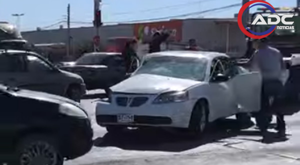 Chihuahua, Chih.-Un aparatoso accidente vehicular se registró en el cruce del Periférico Lombardo Toledano y el Boulevard Juan Pablo II, donde una Jeep color rojo impactó contra un Pontiac G6 GT blanco cuando ambos vehículos intentaban cruzar la intersección controlada por semáforos.