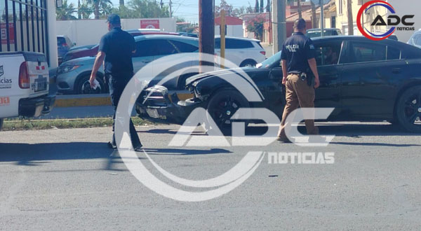 Cd. Delicias, Chih.- Un accidente vial se registró esta tarde sobre la avenida Sexta Norte y Oriente, a un costado del hotel Casa Grande, donde una camioneta Dodge Charger negra y una Ford diésel del mismo color participaron en una colisión que dejó únicamente daños materiales.