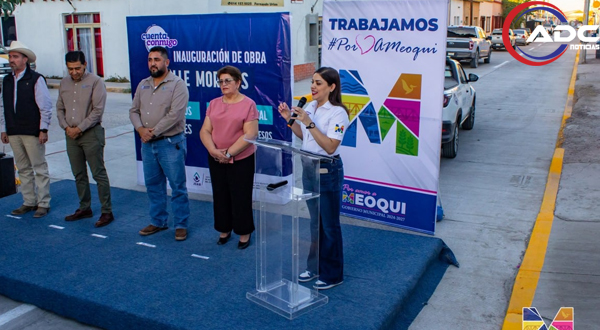 Meoqui, Chih.- La alcaldesa Miriam Soto acompañó a José Luis Cisneros, Director Ejecutivo de la JMAS de Meoqui, en la inauguración de la calle Morelos, donde se llevaron a cabo trabajos de pavimentación con concreto hidráulico, rehabilitación de líneas de agua potable, drenaje, registros y señalización vial en el tramo entre la calle Aldama y Juárez con una inversión superior a los 5 MDP.