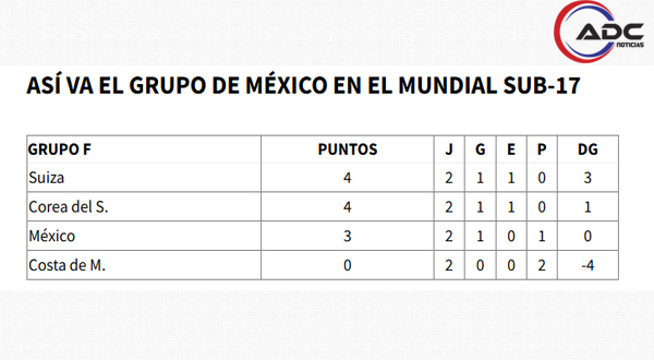 El Tricolor está ubicado en Grupo F del Mundial Sub-17, junto a Suiza y Corea del Sur.