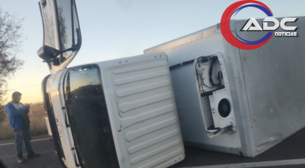Cuauhtémoc, Chih.-Durante la mañana de este jueves, un camión de la marca Isuzu, perteneciente a una empresa de carne, volcó a la altura del kilómetro 141 de la carretera Cuauhtémoc–La Junta, cerca de la zona conocida como Huerta El Rosario, provocando el cierre parcial de la vía y un importante congestionamiento vehicular.